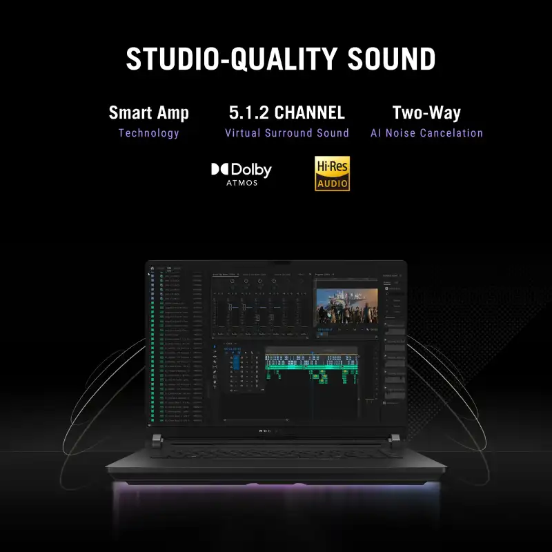 | Audio | AI noise-canceling technology || Dolby Atmos || Hi-Res certification (for headphone) || Smart Amp Technology || Built-in array microphone || 1x 3.5mm Combo Audio Jack |
