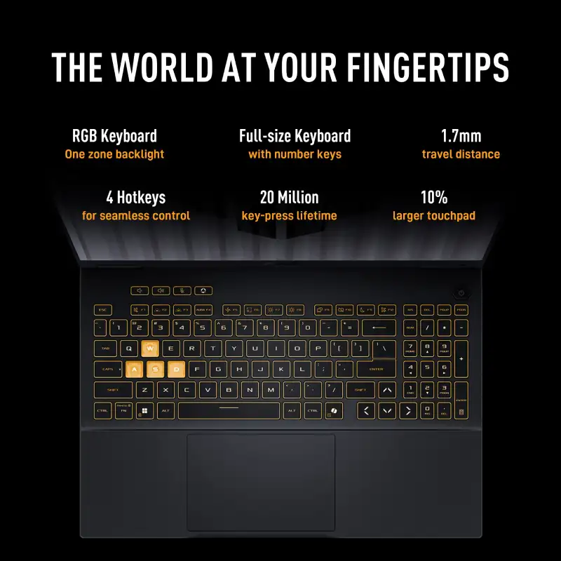 | Keyboard | Backlit Chiclet Keyboard 1-Zone RGB With Copilot key *Copilot in Windows (in preview) is rolling out gradually within the latest update to Windows 11 in select global markets. Timing of availability varies by device and market. Learn more: https://www.microsoft.com/en-us/windows/copilot-ai-features?r=1#faq |