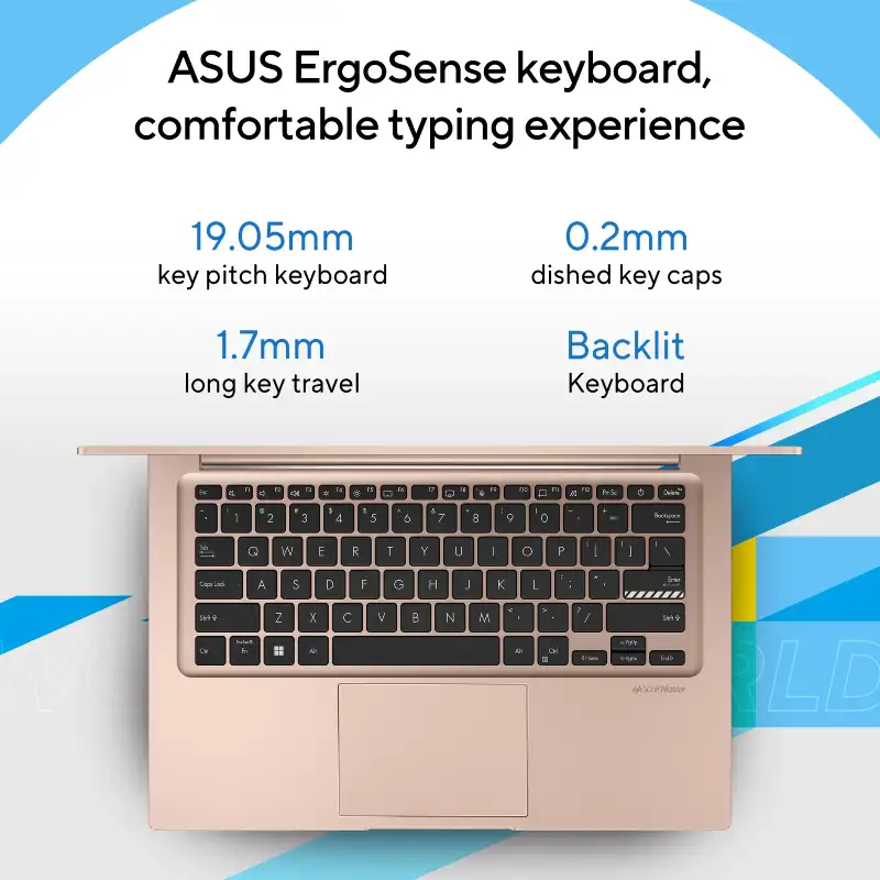 Stand out with the ASUS Vivobook 14 in a unique Terra Cotta finish, a laptop that blends distinctive style with reliable 13th Gen Intel Core i3 performance. Perfectly sized for life on the go, it features a 14-inch FHD IPS-level display, a fast 512GB PCIe 4.0 SSD, and a tactile backlit keyboard with an integrated NumberPad for enhanced productivity. Built to survive the rigors of travel with military-grade durability and equipped with modern essentials like Wi-Fi 6E and a privacy webcam shutter, it’s the ideal choice for everyday excellence.