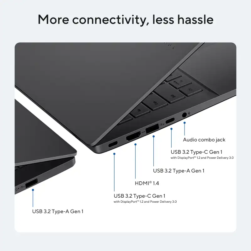| Standard Ports | 2x USB 3.2 Gen 1 Type-A (data speed up to 5Gbps) 2x USB 3.2 Gen 1 Type-C with support for display / power delivery (data speed up to 5Gbps) 1x HDMI 1.4 1x 3.5mm Combo Audio Jack |
