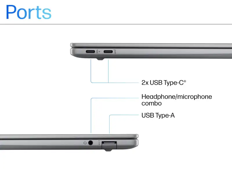 | Ports | 1x USB Type-C® 40Gbps; 1x USB Type-C® 10Gbps; 1x USB Type-A 10Gbps; 1x Headphone/Mic Combo |